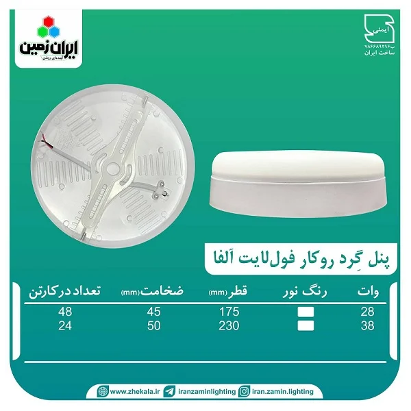 پنل فول لایت 28 وات ایران زمین مدل روکارخرید پنل فول لایت 28 وات ایران زمین گرد روکار | مشخصات و قیمت